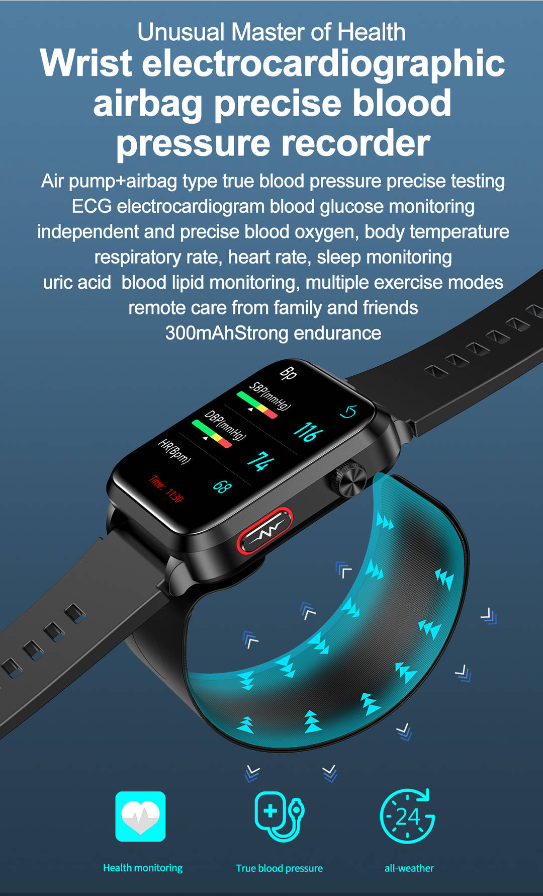 Air Pump+Airbag Blood Pressure Test Smartwatch Blood Lipid Uric Acid ECG Monitoring Smart Watch
