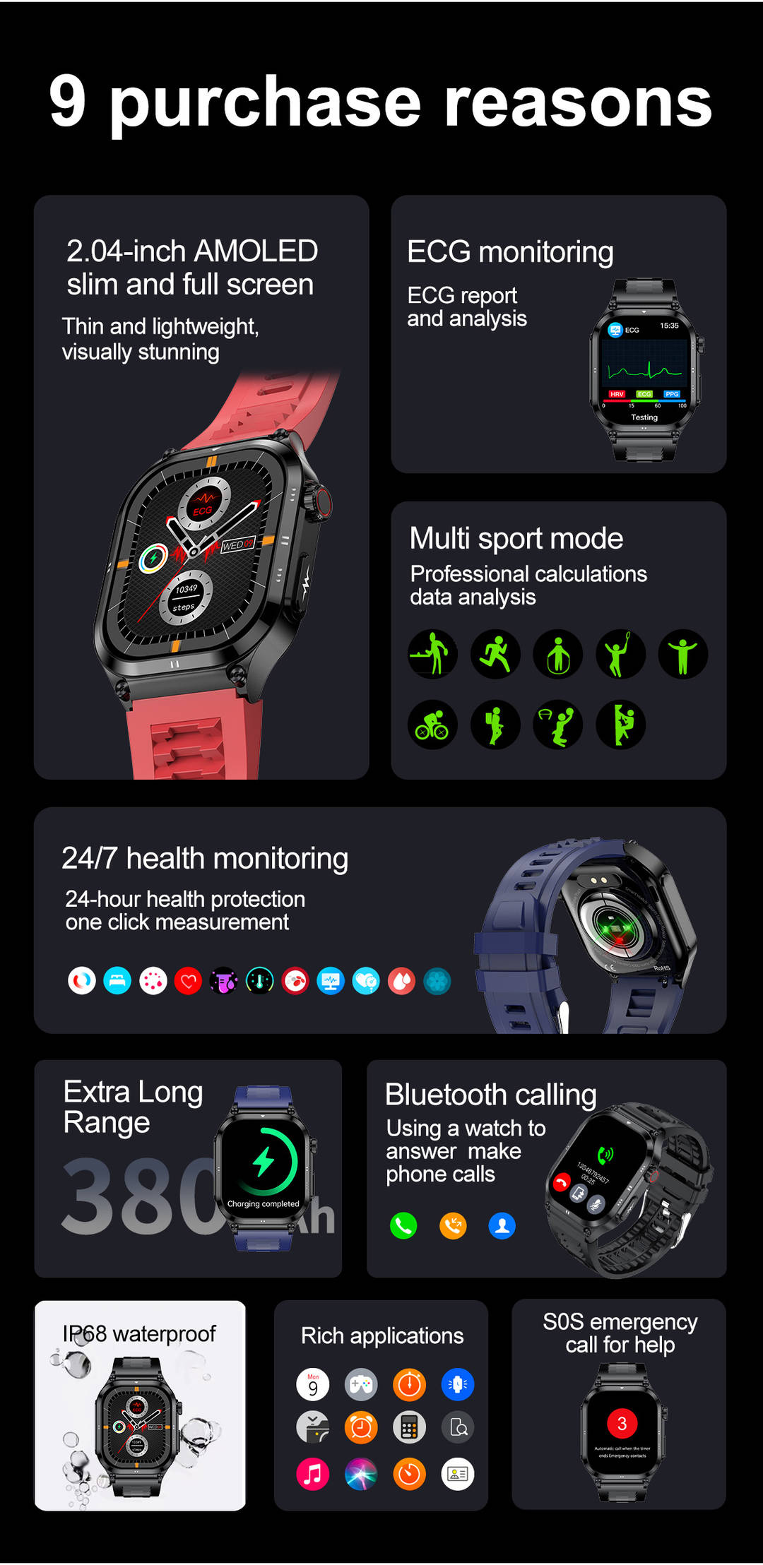 Be the first to review “New ECG Non Invasive Blood Pressure Health Monitor BT Calling SmartWatches”