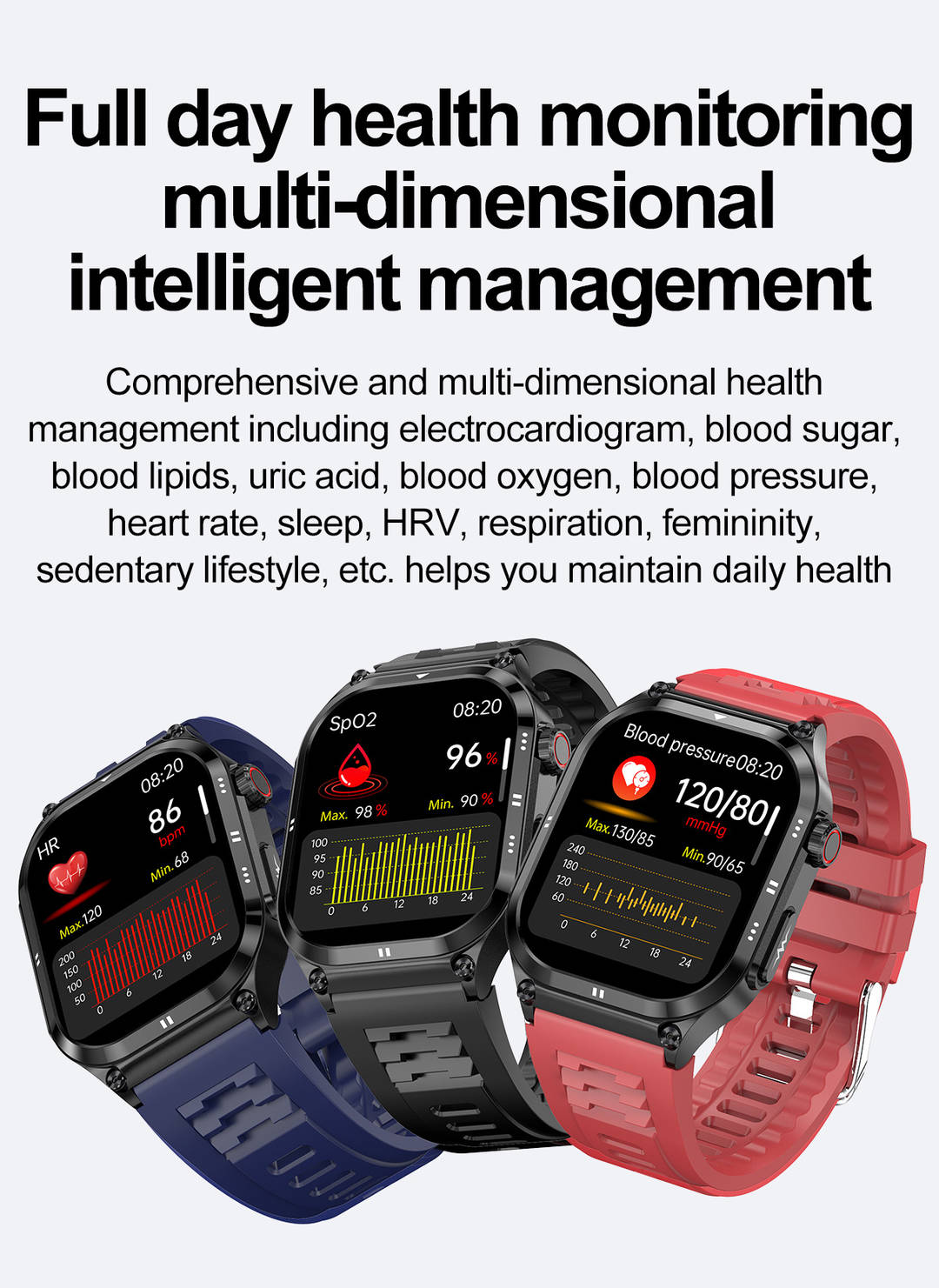 New ECG Non Invasive Blood Pressure Health Monitor BT Calling SmartWatches