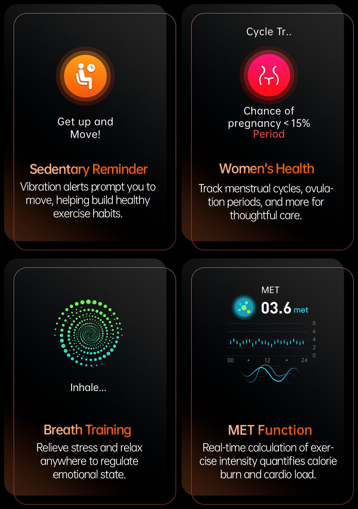 Fitness smart watch for men and women can monitor your heart rate and measure Blood Pressure & Blood Oxygen of health all day automatically.You can read them real-time directly on the smart watch