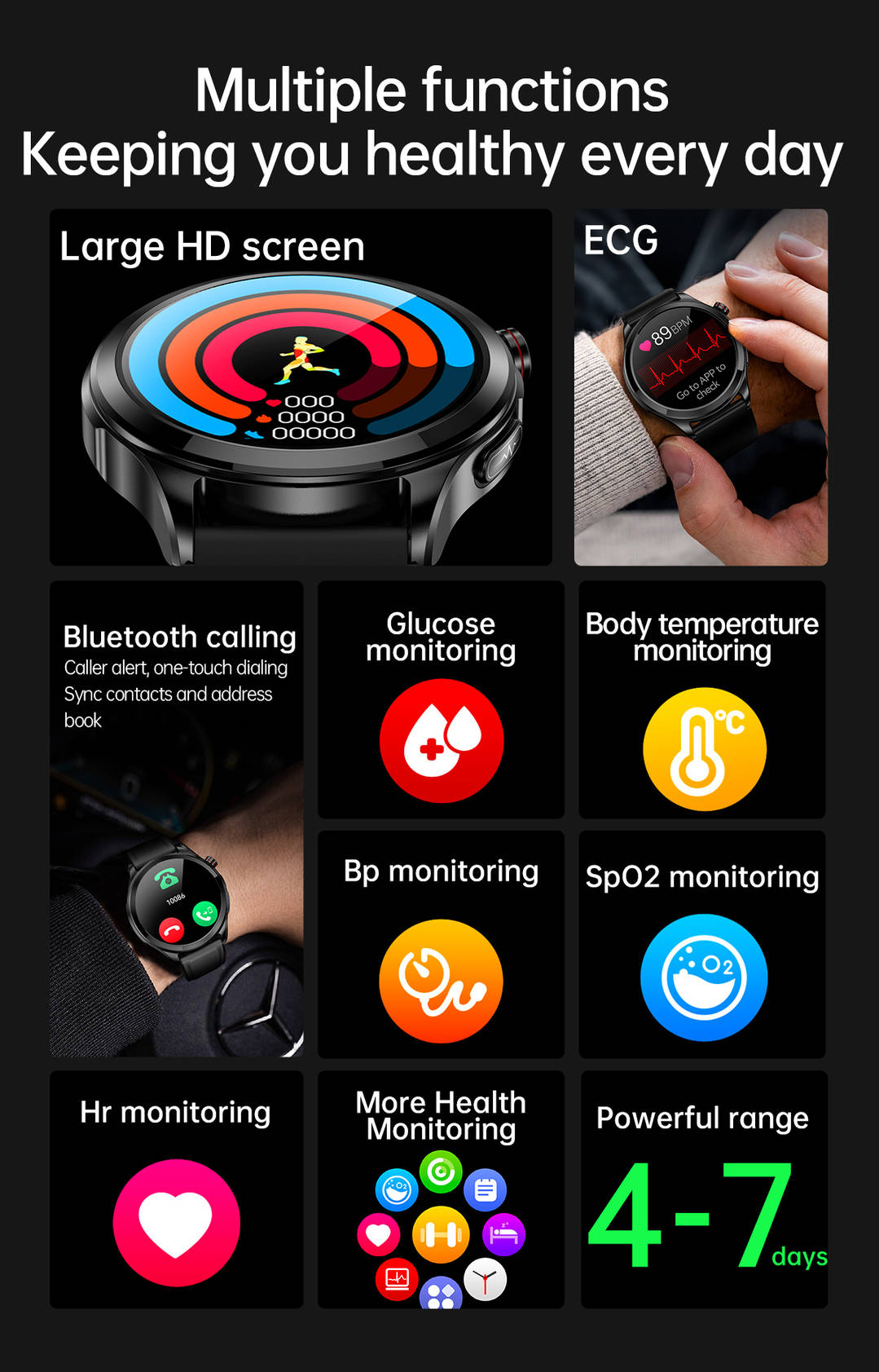 SmartWatch for Sport NFC Multi-Language BT call Men with IP68 Waterproof Outdoor Watch